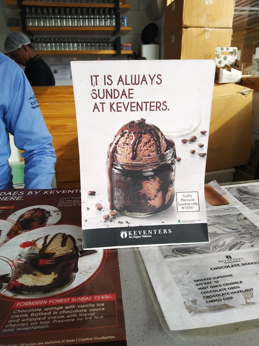 Keventers - Jaggi City Center Ambala The shakes tastes best @ keventers Food joint is also catering for Ice Creams / hot beverages too I Had taken a new flavour this time , Kesar Elachi Coffee / peanut butter shake is a must go Visiting the keventers since last 5 yrs Prices starts @ 100 ranging to 350 / shake