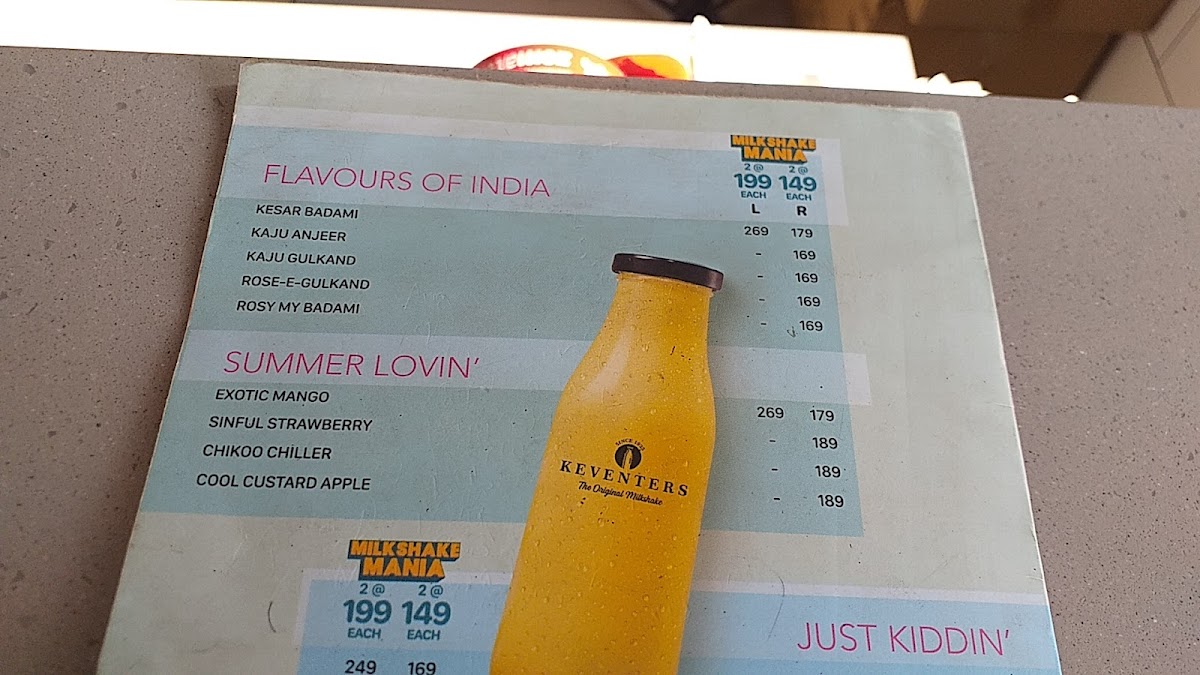 Keventers - Jaggi City Center Ambala Menu